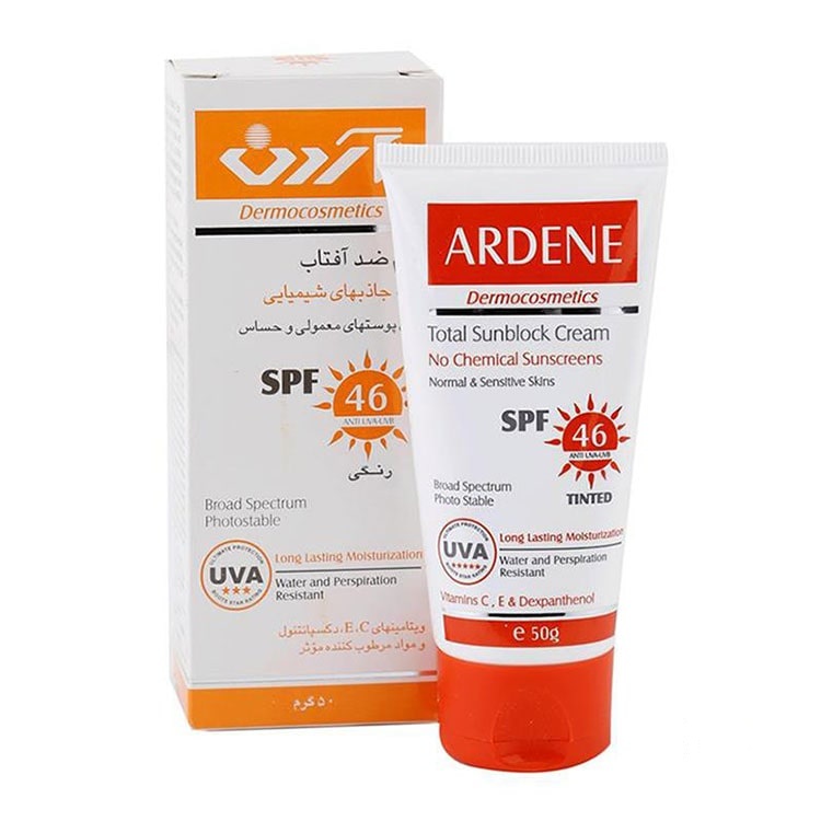 کرم ضدآفتاب رنگی SPF46 آردن فاقد جاذبهای شیمیایی مناسب پوستهای معمولی و حساس ۵۰ گرم :