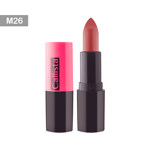 رژ لب مات کالیستا رنگ M26 ، با فرمولاسیون منحصر به فرد خود لب ها را خشک نمی نماید و به طور کاملا یکدست تمامی لب را پوشش می دهد. این رژ لب دارای جلوه ای مات می باشد و بعد از استفاده روی لب ایجاد وزن و سنگینی نمی کند. ویتامین E موجود در این رژ لب باعث نرمی و لطافت لب ها می گردد.