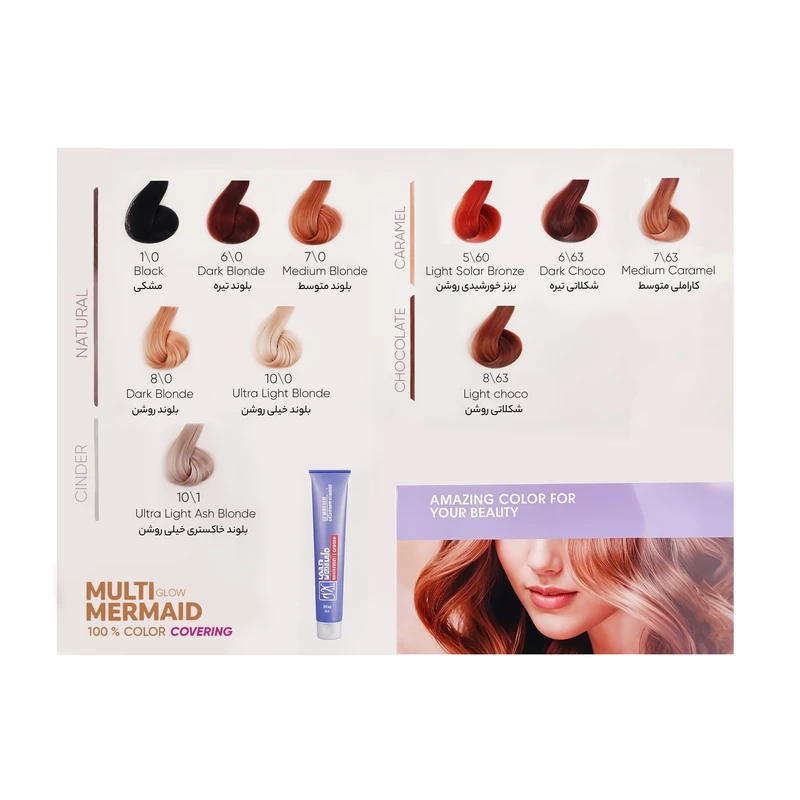 این محصول دارای پوششدهی مناسب موهای سفید است و پس از رنگآمیزی، موها را نرم، براق و خوشحالت نشان میدهد.