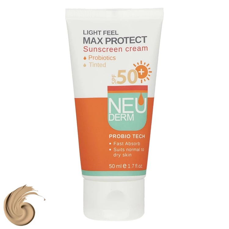 کرم ضد آفتاب Max Protect نئودرم spf50 رنگی مناسب پوست خشک و معمولی حجم 50 میلی لیتر