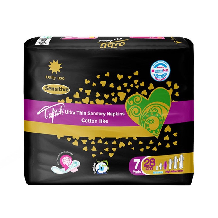 - بسته بندی: هفت عدد نوار بهداشتی سه تا شده در بستهبندیهای تکی داخل پاکت